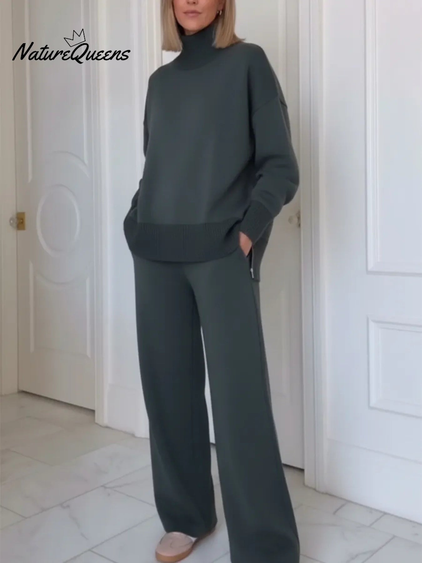 Ten wygodny i prosty top z golfem jest wykonany z miękkiej wtyczki, która łączy w sobie teksturę i wygodę.